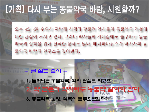 소비자가 약국에서 강아지 백신을 고양이에게 줘도 된다고 했다며 맞는 것인지 문의가 오는 경우가 있는데 약사… 서초구에서 동물병원을 운영 중인 Y수의사는 심장사상충약에 대한 오남용 우려를 예로 들었다. Y수의사는…