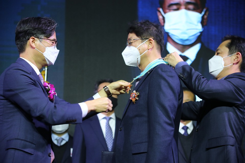 -산업포장을 받은 경동나비엔 황인수 전무는 국책과제 ‘가정용 초고효율 에너지기기 개발’ 수행으로 국가 보일러 산업발전에 기여했다고 합니다. IOT를 접목한 보일러 개발, 원격제어를 통해 가스안전사고 방지 및 소비자의 사용 편의성을 향상했다고 합니다. 또한 고효율 순간식 가스온수기 개발로 북미 콘덴싱온수기 시장 1위 및 2017년 2억3000만달러 수출 달성하는 등 누적판매 103만대를 돌파했다고 합니다.
