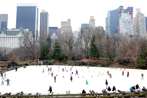 추운 날씨 스케이트장 나들이객으로 북적