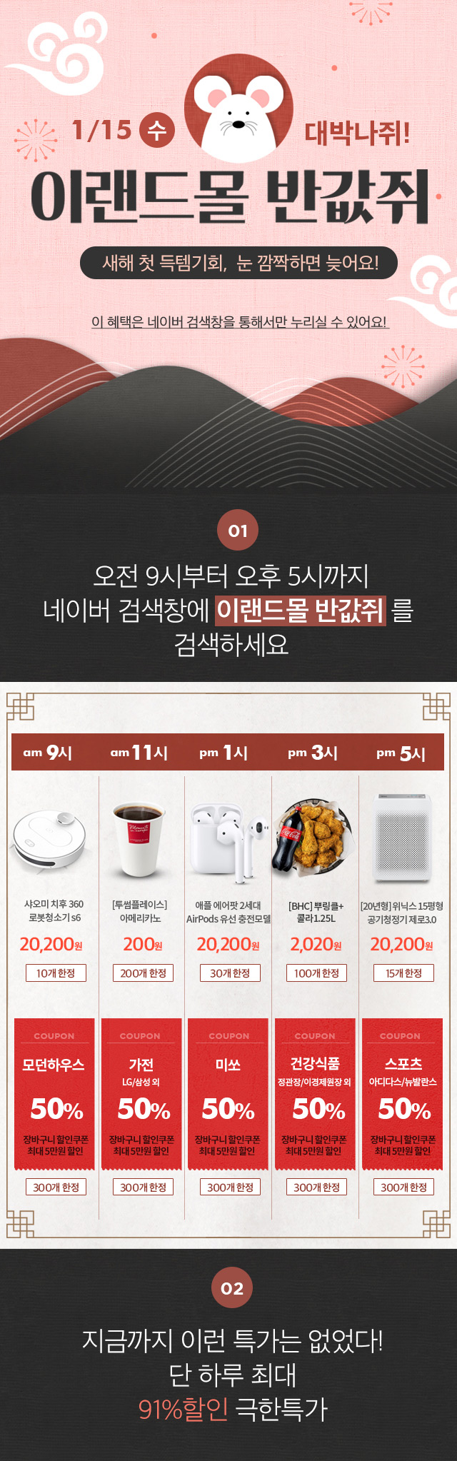 이랜드몰, 새해맞이 반값 쥐 행사최대 91% 할인