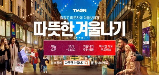 ‘따뜻한 겨울나기’ 기획전은 잦은 기온 변화로 ‘반짝 한파’가 예상되는 올 겨울을 대비해 난방용품, 겨울철 먹거리, 겨울 패션 및 침구류 등을 특별 할인가에 판매한다고 합니다. 기획전이 시작되는 오늘(9일) 자정부터 매시간 초특가 상품을 선보이는 ‘티몬데이’가 열려 최대 10% 할인 쿠폰이 지급되는 등 압도적 할인을 더한 특가 쇼핑 기회가 열린다고 합니다.