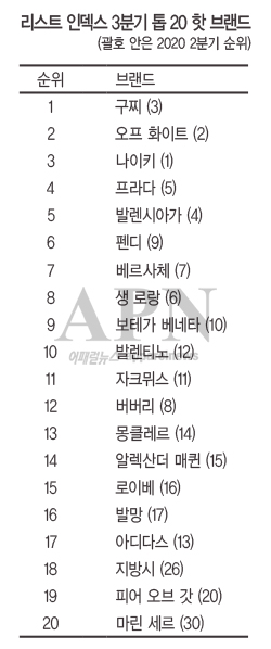 3분기 리스트 인덱스 구찌, 나이키 제치고 정상 탈환
