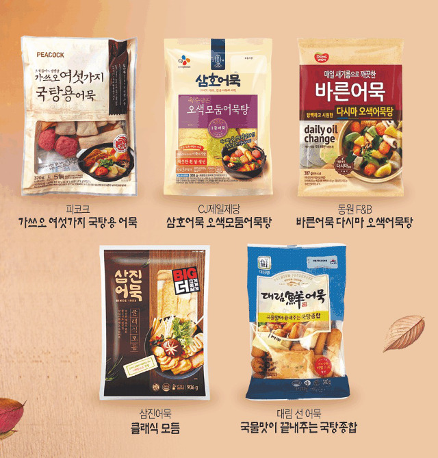 CJ제일제당 삼호어묵 오색모둠어묵탕, 사조대림 대림 선 어묵 국물맛이 끝내주는 국탕종합, 동원F&B 바른어묵 다시마 오색어묵탕, 삼진어묵 클래식 모듬, 이마트 피코크 가쓰오 여섯가지 국탕용 어묵을…