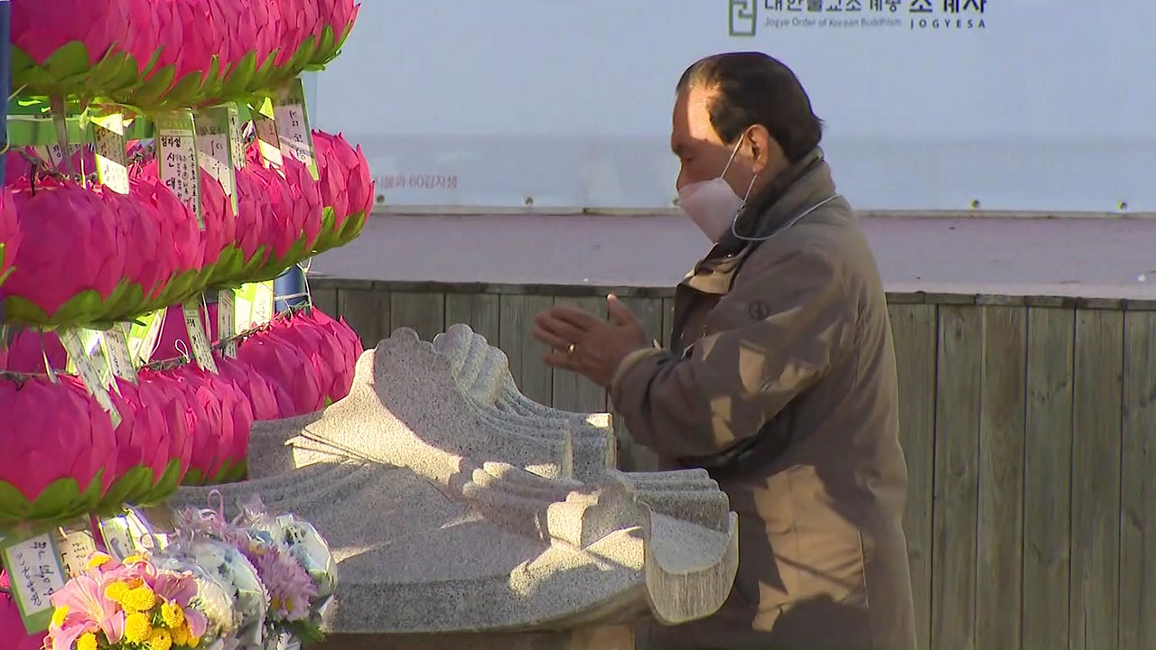 실내 온풍기도 사용하지 않는 등 코로나19 확산을 막기 위한 노력이 계속되고 있습니다. 기도 인원도 기존 400명대에서 10분의 1 수준인 40명 미만으로 대폭 줄었는데요. 법당에 들어가지 못한 인원은 바깥에 마련된 별도의 천막…