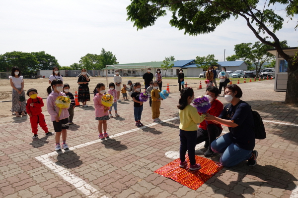이두초등학교병설유치원이 지난 27일 야외 입학식을 실시했다고 29일 밝혔다. 보호자의 입학축하 꽃다발 전달… 이제부터 안정된 학사 일정이 졸업식까지 잘 마무리 될 수 있기를 바란다. 우리 비안면 지역사회 구성원들이…