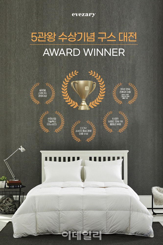 이브자리, 5관왕 수상기념 구스침구 할인 페스티벌