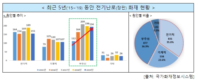 난로는 먼지에 불이 붙어 합선으로 인한 화재가 자주 발생한다고 합니다. 사용 전 먼지를 반드시 제거하고 전기장판과 마찬가지로 온도조절기와 피복 플러그를 잘 점검해야 한다고 합니다. 벽에서 20㎝ 이상 떨어진 곳에서 사용해야 한다고 합니다.