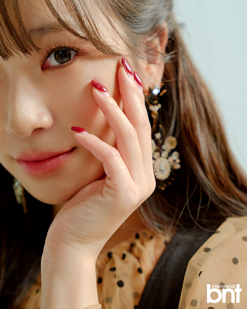 총 세 가지 콘셉트로 진행된 화보 촬영에서 그는 트위드 재킷과 스커트를 착용하여 빈티지하면서 몽환적인 느낌을 표현했다. 이어 오버롤 팬츠를 착용하여 시크함과 세련미를 뽐내기도 했으며, 레드 원피스에 포니테일…