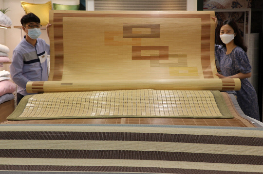 대표 상품은 대나무 겉면을 이용해 시원한 감촉이 특징인 한일 카페트 더메종의 엘르 배부 대자리, 엘르파리의 시어서커 여름 이불 등이다. 최근 에어컨 사용으로 여름용 구스다운 이불 선호가 높아진 것에 맞춰 구스앤홈…